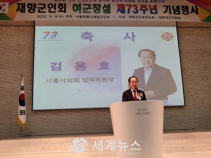 [세계뉴스 정서영 기자] 서울특별시의회 정책위원회 위원장과 도시안전건설위원회에서 부위원장으로 활동하고 있는 김용호 서울시의원(국민의힘, 용산1)은 지난 6일 오전 11시에 서울 영등포구에 위치한 공군호텔에서 개최된 ‘재향군인회 여군창설 제73주년 기념행사’에 참석하여 축하했다고 밝혔다.
