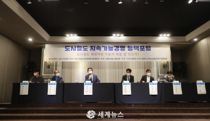 [세계뉴스 차성민 기자] 서울교통공사 등 전국 6개 도시철도 운영기관이 국회의원(더불어민주당 윤관석・윤후덕 의원)・서울시의회・언론사(경향신문)와 28일 오전 10시 여의도 켄싱턴호텔 센트럴파크에서 공동으로 개최한 ‘도시철도 지속가능경영 정책포럼’이 성황리에 막을 내렸다.