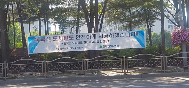 | ▲ 동북선 도시철도 안전시공 시행사 현수막. |