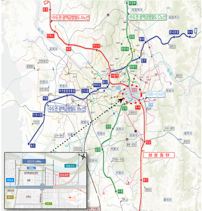 강남권 광역복합환승센터 개발사업은 영동대로 지하공간 복합개발사업의 일환으로 국토부와 서울시가 영동대로 삼성역~봉은사역 630m 구간에 수도권광역급행철도(GTX-A/C), 도시철도(위례신사), 지하철(2/9호선) 및 버스·택시 등의 환승을 위해 공동 추진 중인 사업이다.