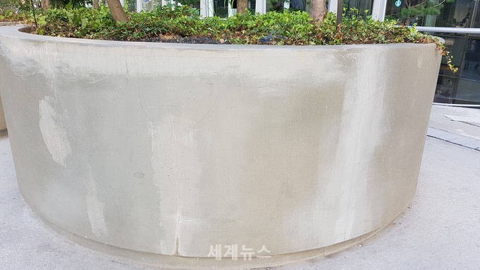 | ▲ '서울로7017'. 서울로에 놓아진 원형 화분 외면이 쩍쩍 갈라져 있다. © 세계뉴스 |