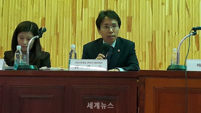 | ▲ 30일 서울시 상수도사업본부가 개최한 ‘배수지, 정수지 방수·방식공법 선정 및 계약방법’ 토론회에 지정토론자로 참석해 발표를 하고 있다. © 세계뉴스 |