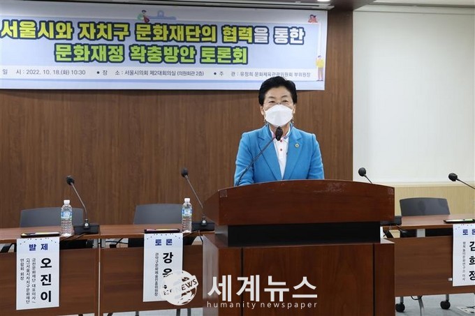 [세계뉴스 정서영 기자] 18일 서울특별시의회 문화체육관광위원회 유정희 부위원장(더불어민주당, 관악4)이 ‘서울시와 자치구 문화재단의 협력을 통한 문화재정 확충방안 토론회’를 개최했다.