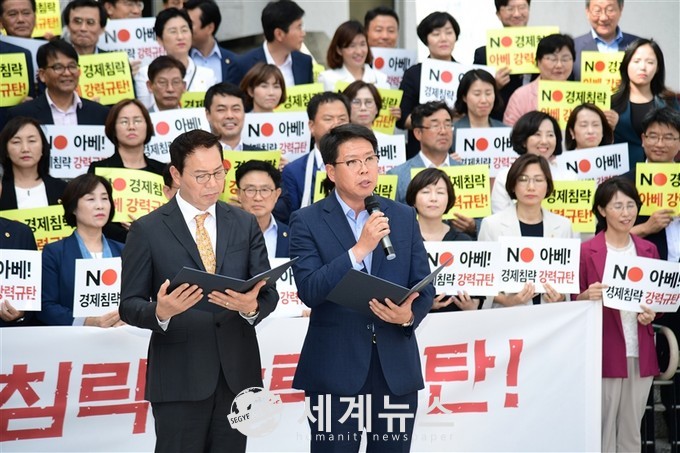 하나, 일본 정부는 한일 우호관계의 근간을 훼손하고 세계 자유무역질서를 퇴보시키는 경제침략 수출규제조치를 즉각 철회하라!