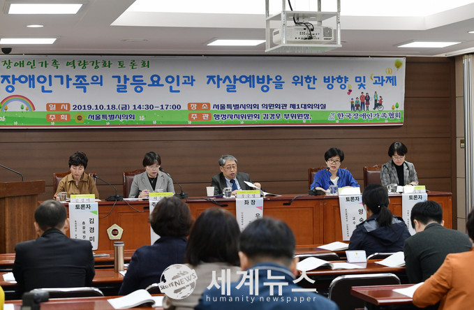 [세계뉴스 전승원 기자] 장애인가정이 맞닥뜨린 가족구성원간의 갈등요인과 자살 등 다양한 문제점을 짚어보는 토론회가 서울특별시의회 제1대회의실에서 처음으로 열렸다.