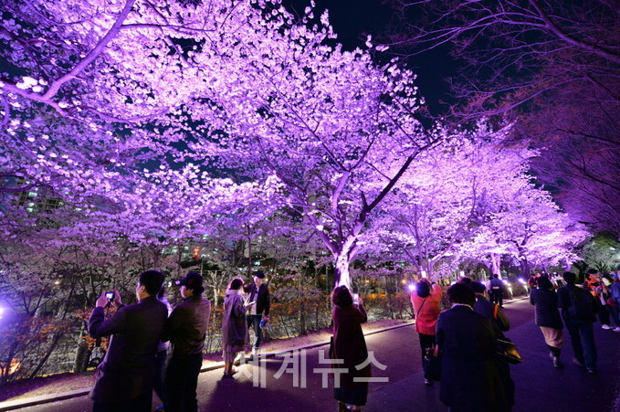 | ▲ 경관조명이 시범설치 된 장안벚꽃길 (지난해 중랑천 제1체육공원앞). © 세계뉴스 |