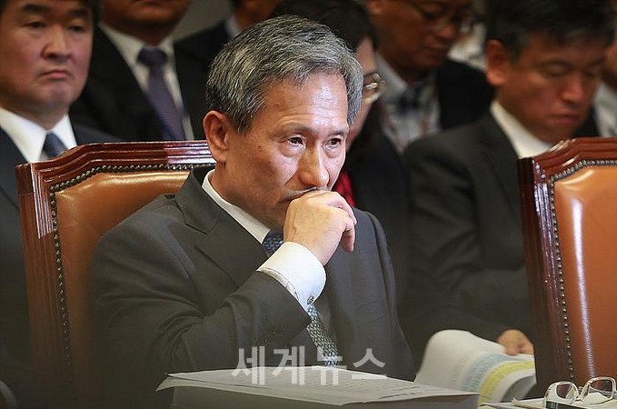 | ▲ 김관진 국가안보실장이 23일 국회 운영위원회 국정감사에서 의원들의 질의 답변에 앞서 고심하고 있다. © 세계뉴스 |