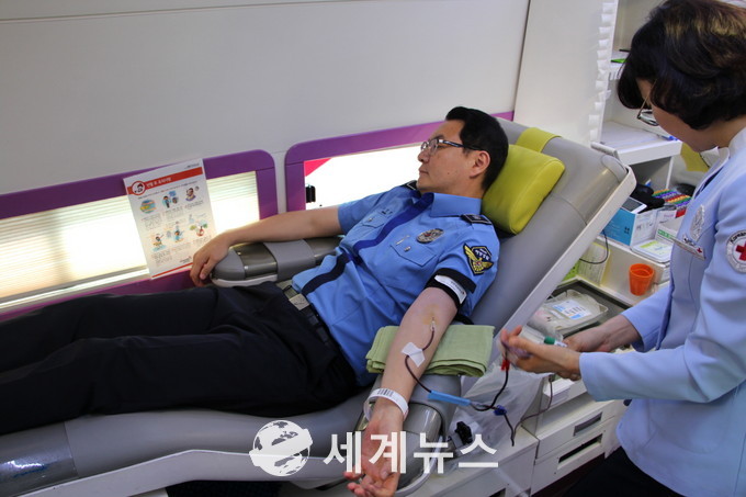 이날 사랑의 헌혈에는 이제 갓 입대한 스무 살 의무경찰 대원부터 고령의 경찰관까지 40여명이 참여해 헌혈을 통해 사랑 실천의 열의를 느끼기에 충분했다.