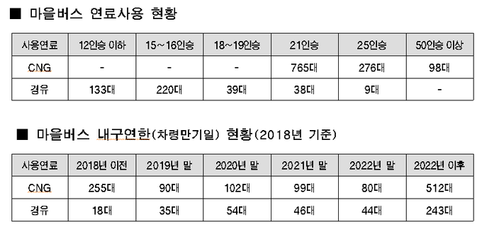 문제는 19인승 이하 중·소형 마을버스의 경우 노후화 되더라도 교체할 수 있는 CNG 차량이 없다는 것이다. 경유 마을버스가 노후될 경우 다시 경유 차량으로 구매할 수밖에 없다는 것이다.