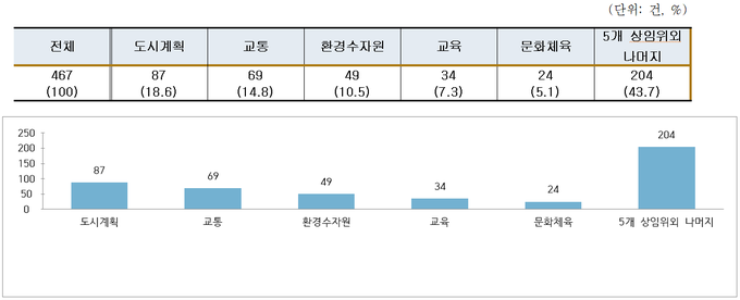 | ▲ 상위 5개 상임위원회 민원 현황. |