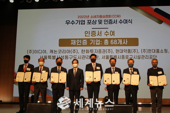 [세계뉴스 차성민 기자] 성동구(구청장 정원오) 산하 성동구도시관리공단(이하 ‘공단’)은 지난 9일 2022년 소비자중심경영(CCM, Counsumer Centered Management) 인증서 수여식에서 소비자 중심 경영문화 확산 및 지속적인 경영 개선 활동의 공로를 인정받아 4회 연속 소비자중심경영(CCM)을 인증 받는 성과를 냈다고 밝혔다.
