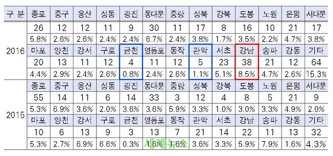 | ▲ 지역별(자치구 기준) © 세계뉴스 |