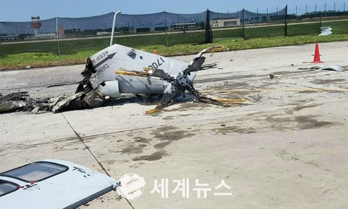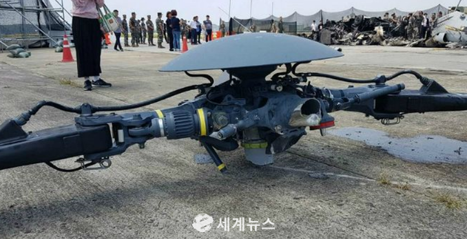 [세계뉴스] 차성민 기자 = 지난 17일 경북 포항시 남구 포항비행장 활주로에서 해병대가 운용하는 상륙기동헬기(MUH-1) 마린온 시험비행에서 이륙 5초만에 회전날개가 이탈해 추락하는 사고가 발생했다.