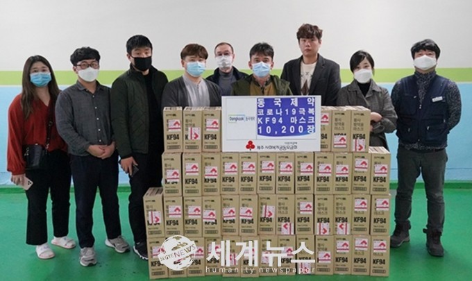 [세계뉴스 윤소라 기자] 동국제약이 지난 12일 제주도약사회의 요청에 따라 마스크 1만200장을 기부했다.