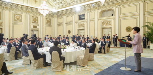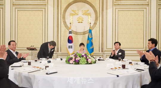 | ▲ 새누리당 국회의원들을 청와대로 초청한 박근혜 대통령이 "당정청이 하나가 되어 4대 개혁 등 경제 활성화에 힘을 쏟아 경제 재도약을 이뤄 나가길 기대한다"고 강조했다 © 세계뉴스 |