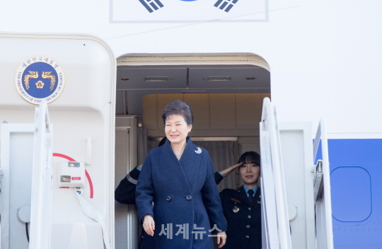 | ▲ 박근혜 대통령이 5박 7일간 프랑스, 체코 순방을 마치고 서울공항에 도착하면서 환한 웃음을 지어보이고 있다. © 세계뉴스 |
