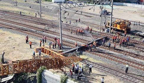 | ▲ 선로를 덮친 크레인 '1호선 부평역' © 세계뉴스 |