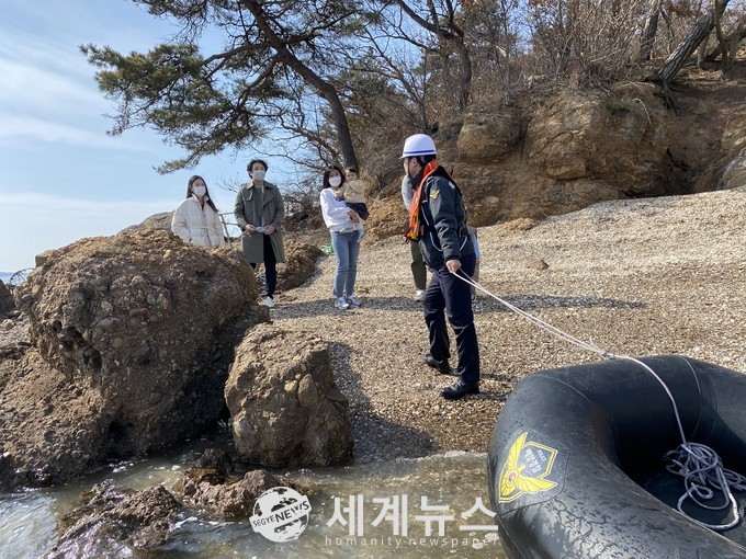 27일 13:40경 보령시 오천면 학성리 밤섬(공룡발자국섬)으로 관광 온 A씨(30대, 남) 일행 등 관광객 6명(성인 4명, 아이 2명)이 물 때를 정확히 파악하지 못하고 관광중 밀물에 미쳐 빠져나가지 못해 갯바위에 고립되었다며 보령해경에 구조를 요청했다.