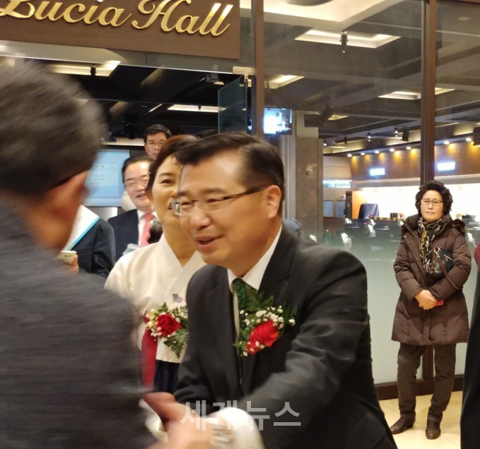 | ▲ 24일 오후 5시 류경기 전 서울시 부시장이 '우문현답-서울을 바꾼 지혜와 용기' 출판기념회에서 하객을 맞이하고 있다. 이날 박원순 서울시장 등 하객 3000여명이 몰려 존재감을 드러냈다. © 세계뉴스 |
