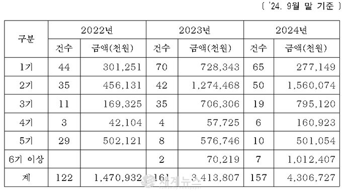 서울특별시의회 교통위원회 김원중 의원(성북2, 국민의힘)이 서울교통공사에서 확인한 자료에 따르면 '22년 122건 14억 793만 원, '23년은 161건 34억 1,380만 원이었으며 '24년 9월 현재 2.9배 증가한 43억 672만 원을 넘어섰다.