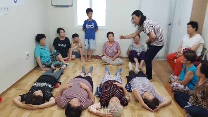 김 박사는 일렬로 바닥에 반듯이 누운 환자를 상대로 골반교정, 척추교정 등을 펼쳐보이자 통증이 거짓말처럼 사라져 버려 치료를 받은 어르신들은 놀라워했다.