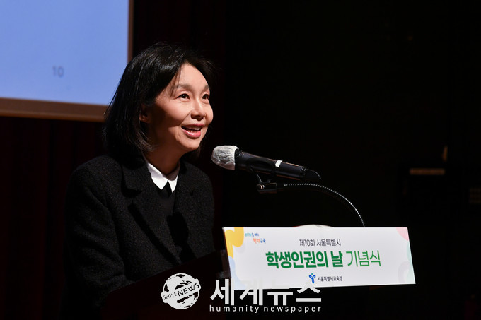 [세계뉴스 윤소라 기자] 최호정 서울특별시의회 의장은 17일 서울시교육청이 주최하는 ‘제10회 서울특별시 학생인권의 날 기념식’에 참석, “학생들의 행복을 위해 열심히 일하겠다”고 약속했다.
