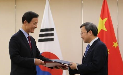 한국과 중국 양국은 9일 오후 중국 베이징(北京)에서 한-중 FTA 발효를 공식 확정하는 외교 공한을 교환했다고 산업통상자원부가 이날 밝혔다.
