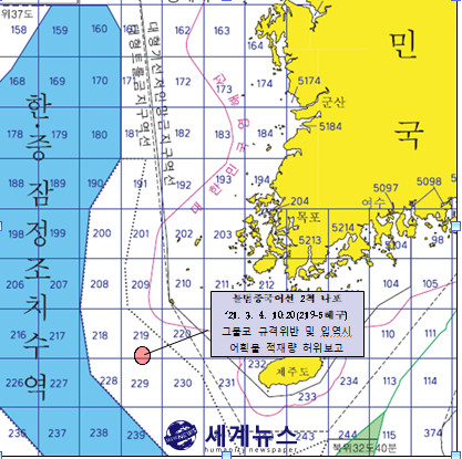 [세계뉴스 윤준필 기자] 해양수산부(장관 문성혁)는 우리수역 입어 관련 규정을 위반한 혐의가 있는 중국어선 2척을 4일에 나포했다고 밝혔다.