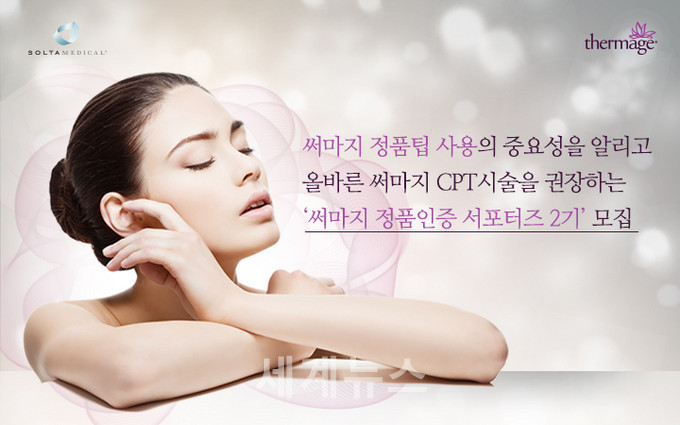 [세계뉴스 윤소라 기자] 바슈롬싸우스아시아인크(대표이사: 이지민 www.solta.co.kr)는 오는 10월 3일까지 공식 홈페이지에서 자사의 대표적인 피부미용 의료장비 브랜드인 써마지의 ‘정품인증 캠페인’을 함께할 써마지 정품인증 서포터즈 2기 모집을 20일 밝혔다.