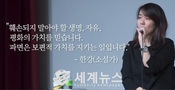 [세계뉴스 = 정서영 기자] 노벨문학상을 수상한 소설가 한강이 윤석열 대통령의 파면을 촉구하며, 국내 문학계에 큰 파장을 일으켰다. 한강은 25일 자신을 포함한 414명의 국내 문학인과 함께 발표한 '한 줄 성명'을 통해 "훼손되지 말아야 할 생명, 자유, 평화의 가치를 믿는다. 파면은 이러한 보편적 가치를 지키는 일"이라고 밝혔다.