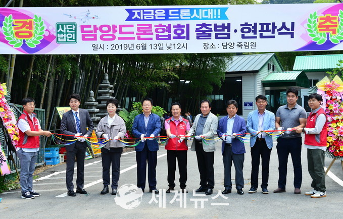 [세계뉴스] 한차수 기자 = 사단법인 담양드론협회가 지난 13일 신성호 담양군 지속가능전략국장과 협회원, 관계자 등이 참석한 가운데 현판식을 개최하고 출범을 알렸다.